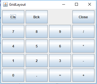 GridLayout dispone los componentes en forma de matriz (cuadrícula) estirándolos para que tengan todos el mismo tamaño. El GridLayout es adecuado para hacer tableros o calculadoras en que todos los botones son iguales, etc. Tan solo debemos indicar el número de filas y de columnas del layout.