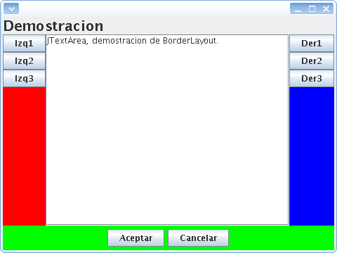 El BorderLayout es adecuado para ventanas en las que hay un componente central importante (una tabla, una lista, etc) y tiene menús o barras de herramientas situados arriba, abajo, a la derecha o a la izquierda.