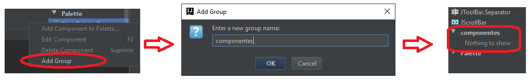 Una vez que hemos añadido las librerías con nuestras clases, desde la paleta de componentes del diseñadir UI Designer, iremos a la sección Palette y haremos click derecho sobre Non-Palette Component y crearemos un nuevo grupo para nuestros componentes:
