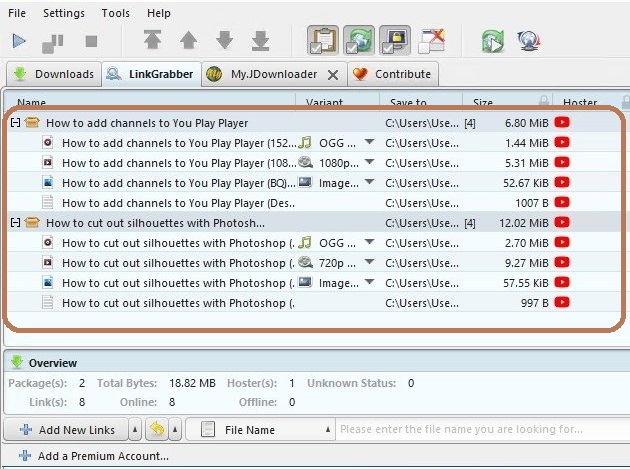 En la siguiente imagen vemos un programa de descargas, cuyo panel central va añadiendo nuevos elementos (subpaneles de descarga), conforme se van poniendo en cola más descargas: