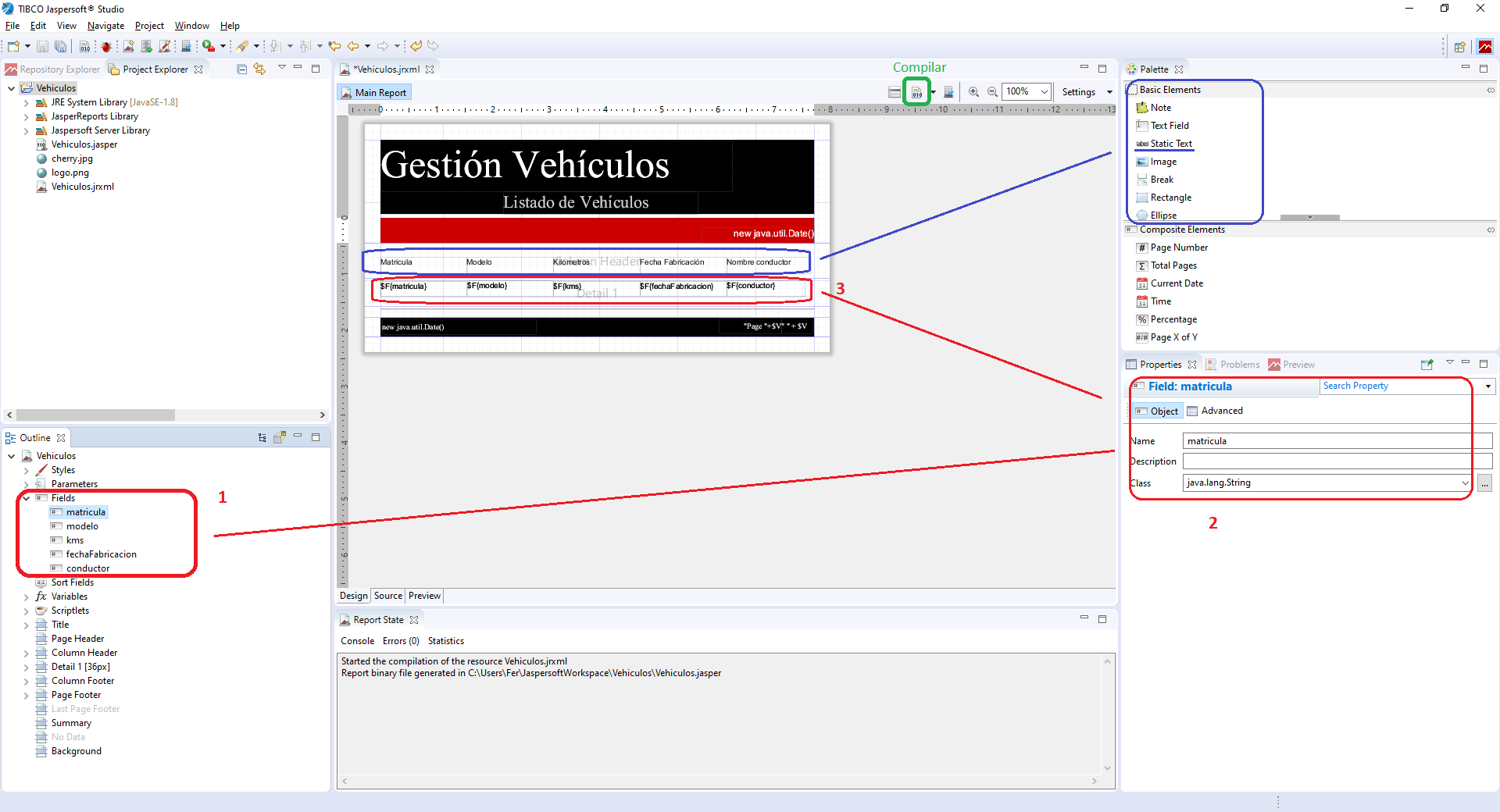 Una vez que tengo mi informe diseñado, pulso sobre el botón compilar, para obtener el archivo .jasper.