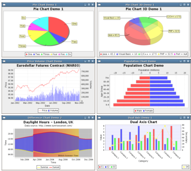 Los siguientes ejemplos de código están planteados con las versiones: jfreechart-1.0.19 y jcommon-1.0.24